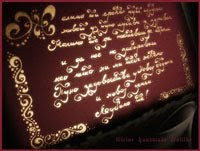 This one was drawn on rice-paper, than put on white background, prepacked with small sparkles of golden color and than preserved in transparent spray :)